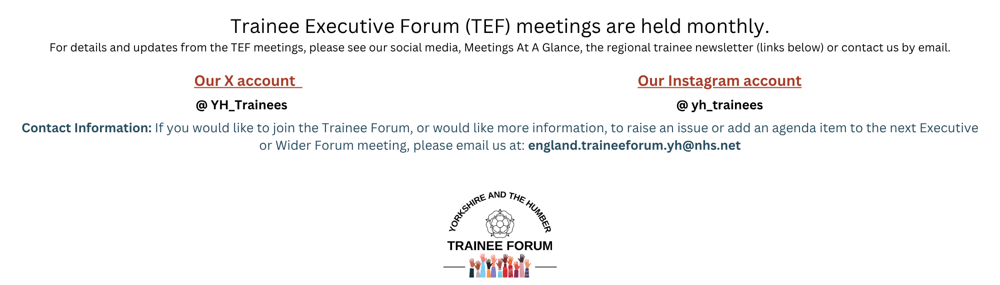 If you want to ask the Trainee Forum a question, or ask us to pass along a question to NHSE WTE - then please email us at england.traineeforum.yh@nhs.net.