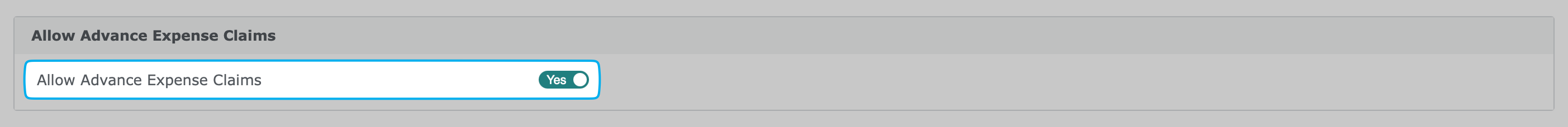 - Scroll to the 'Allow Advance Expense Claims' section of the application form. If the 'Allow Advance Expense Claims' toggle shows Yes, you will be able to record the expense claim before the event. If the toggle shows no, simply click the toggle to change it to Yes and you will then be able to record the expense claim.
